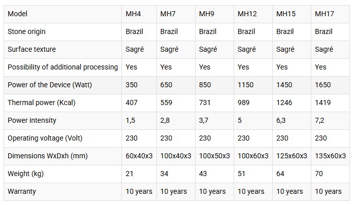 With infrared heating of marble you have energy savings up to 20% due to heat capacity compared to conventional panels