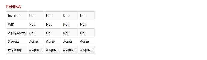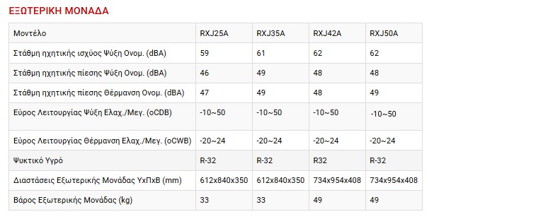 - Οι εξωτερικές μονάδες είναι εξοπλισμένες με σπειροειδή συμπιεστή που διακρίνεται για τη χαμηλή στάθμη θορύβου και την υψηλή ενεργειακή του απόδοση.