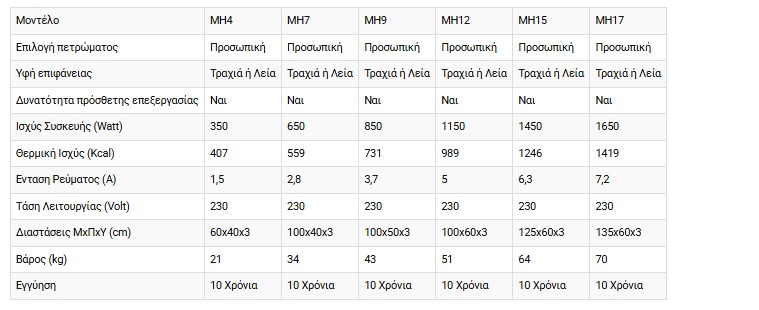Η πρώτη ύλη κατασκευής του θερμαντικού σώματος εξαρτάται από το σχέδιο της επιλογής σας. Όλα τα πετρώματα που χρησιμοποιούνται είναι άριστης ποιότητας.